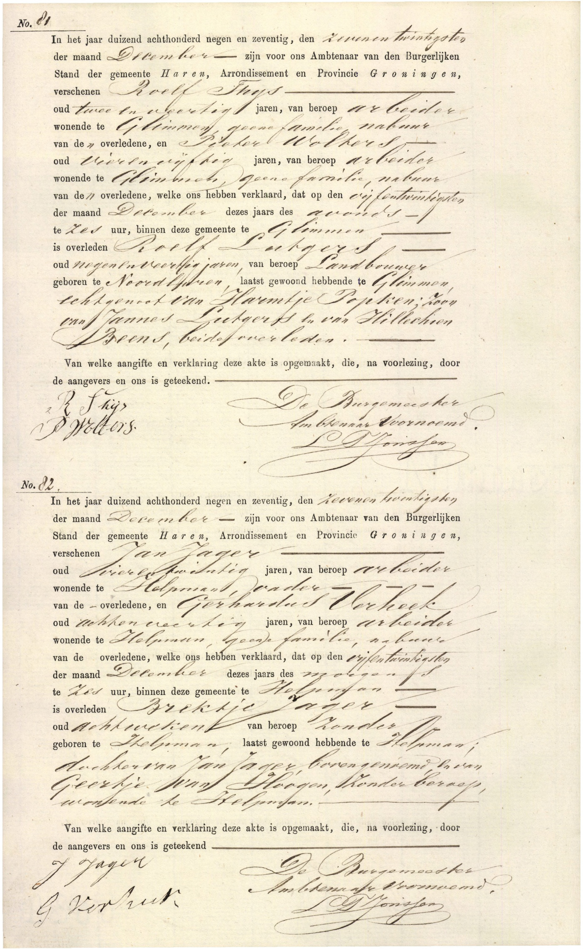 de overlijdensakte van Roelof Lutgers