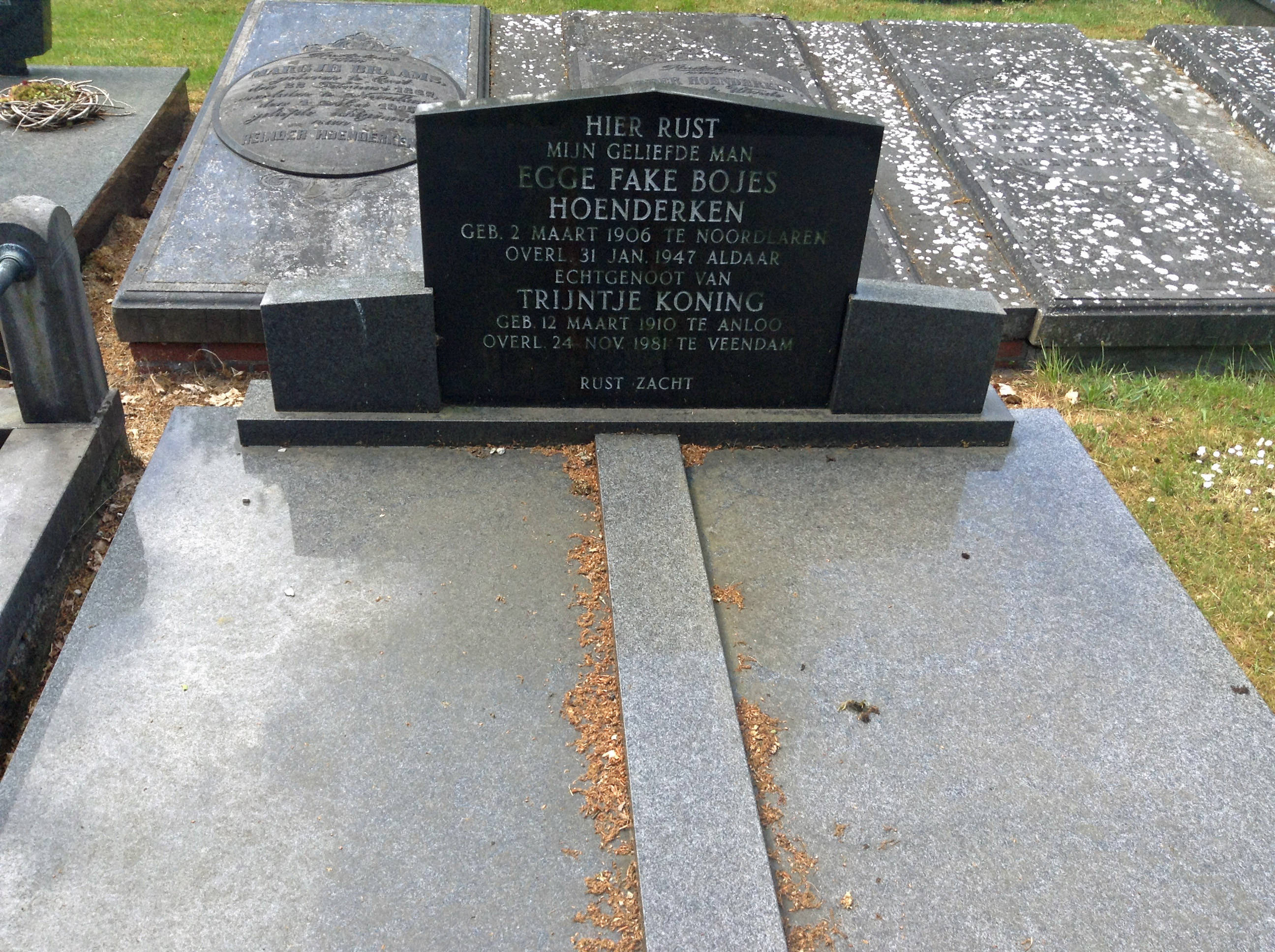 Het graf in vak A2, rij 23, nummer 8 van Egge Fake Bojes Hoenderken