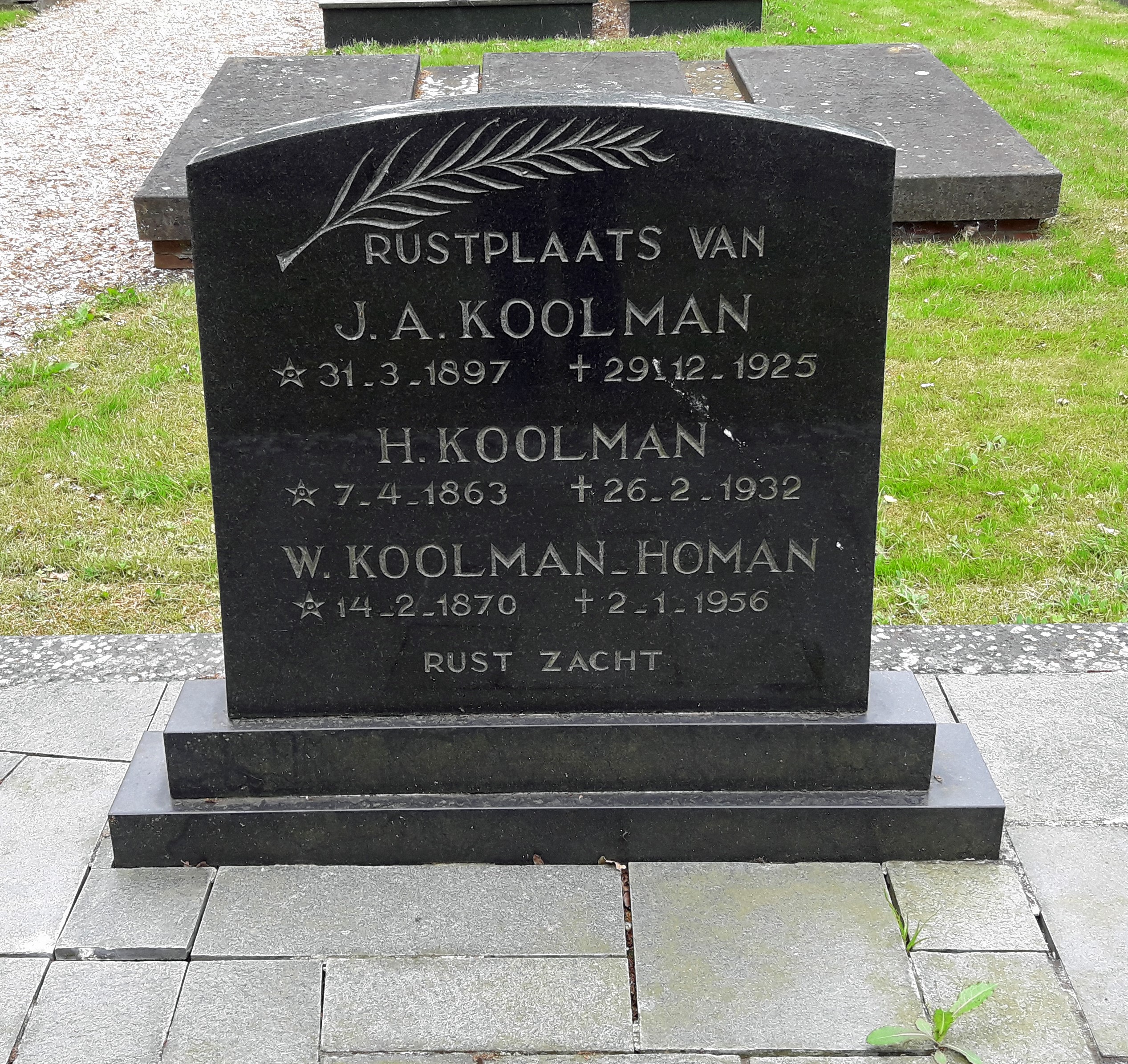 Het graf in vak B1, rij 109, nummer 1 van Wubbegien Homan