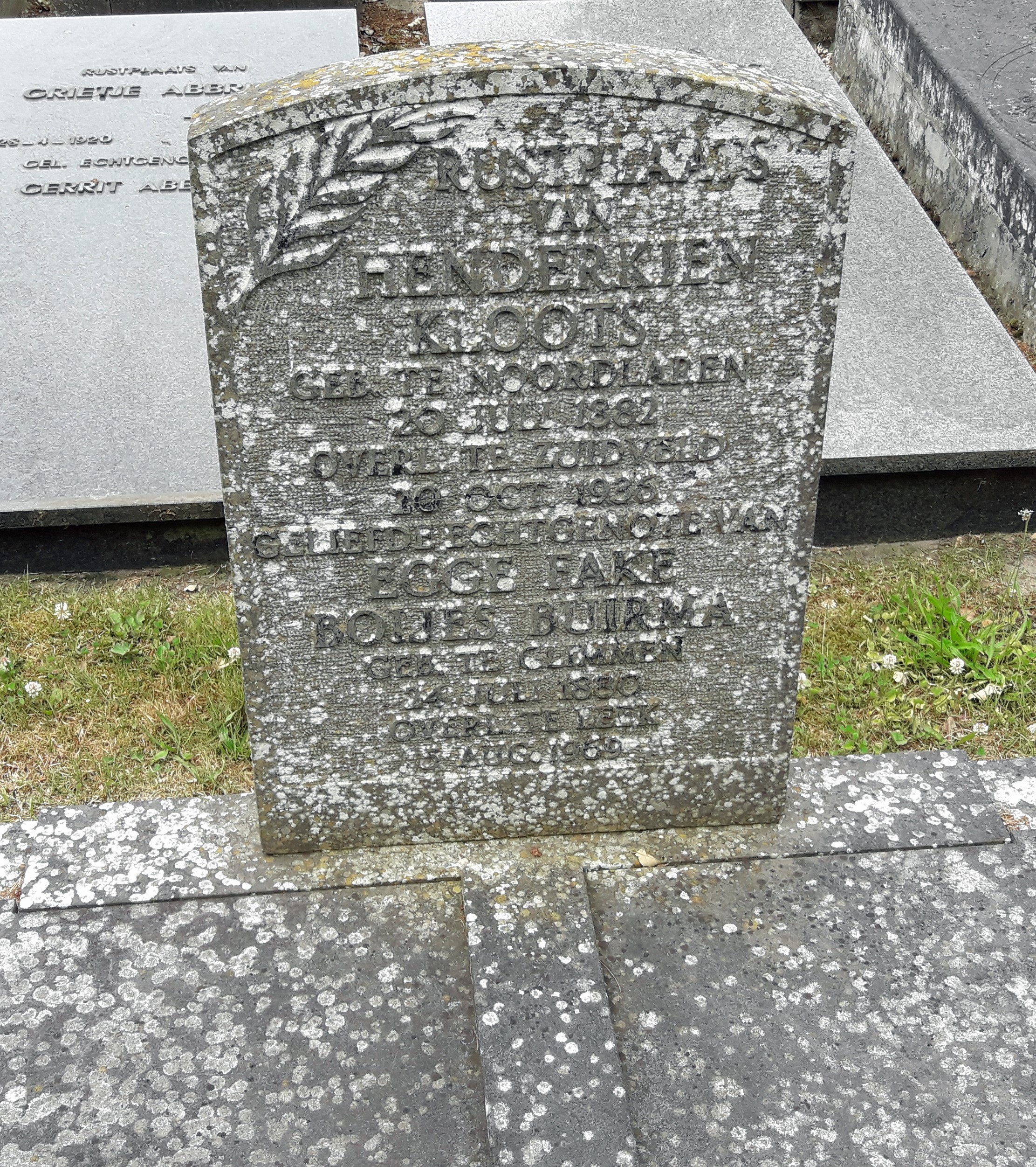 Het graf in vak B1, rij 109, nummer 9 van Henderkien Kloots
